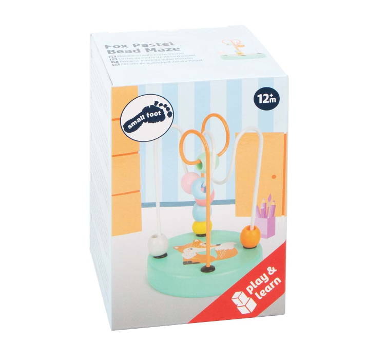 Labirintul din lemn în culori pastelate, cu mărgele și vulpe, este o jucărie educativă minunată pentru cei mici. Piesele colorate și vibrante atrag imediat atenția, iar designul său durabil din lemn oferă siguranță și rezistență. Mărgelele sunt ușor de manevrat, iar copiii se pot bucura de ore întregi de joacă, mutându-le prin labirintul înțelept creat. Prezența vulpii adaugă un element de poveste și aventură, stimulând imaginația și creativitatea.